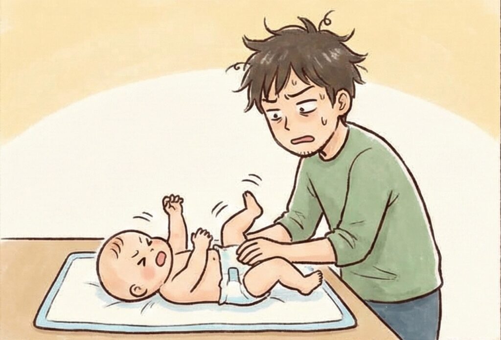 お尻が汚れたまま寝返りを打たれると、マットや服、最悪の場合はパパの手まで被害が拡大します。 この「大惨事になるかどうかの瀬戸際」のプレッシャー、半端ないですよね。